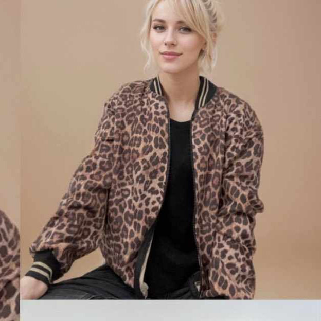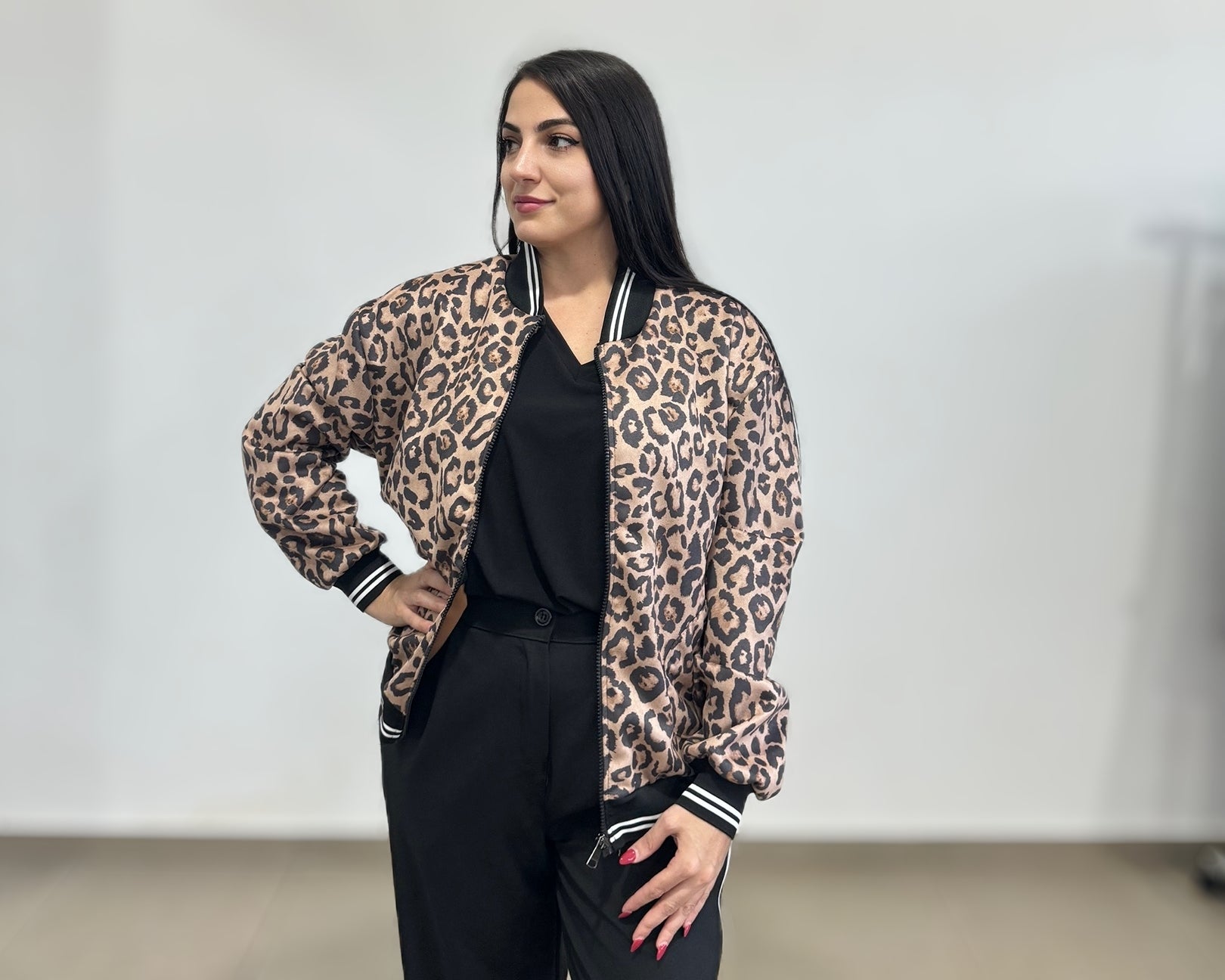 Animal print bobber με άσπρη ριγα στα μανίκια και γύρω από το λαιμό