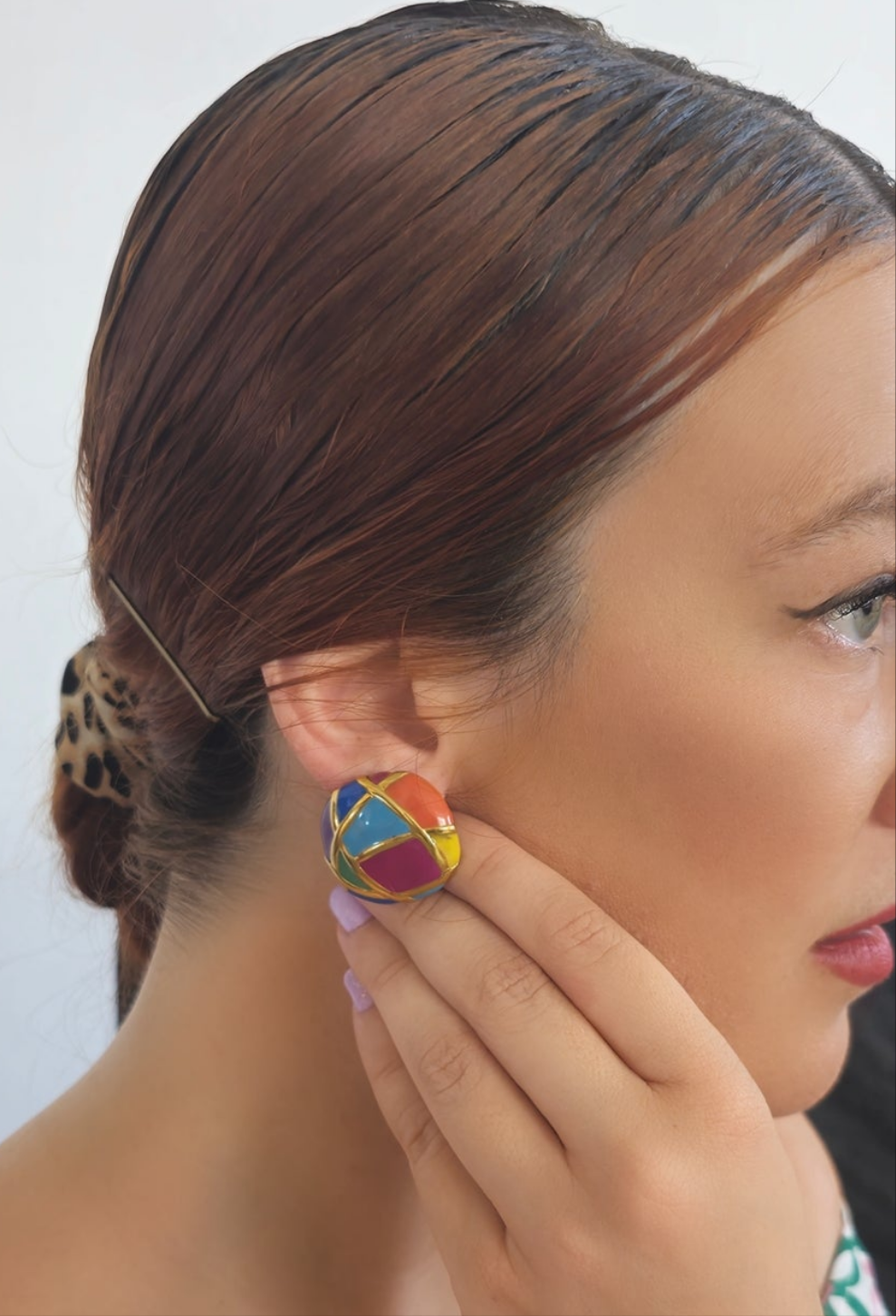 Πολύχρωμα σκουλαρίκια με χρυσές λεπτομέρειες