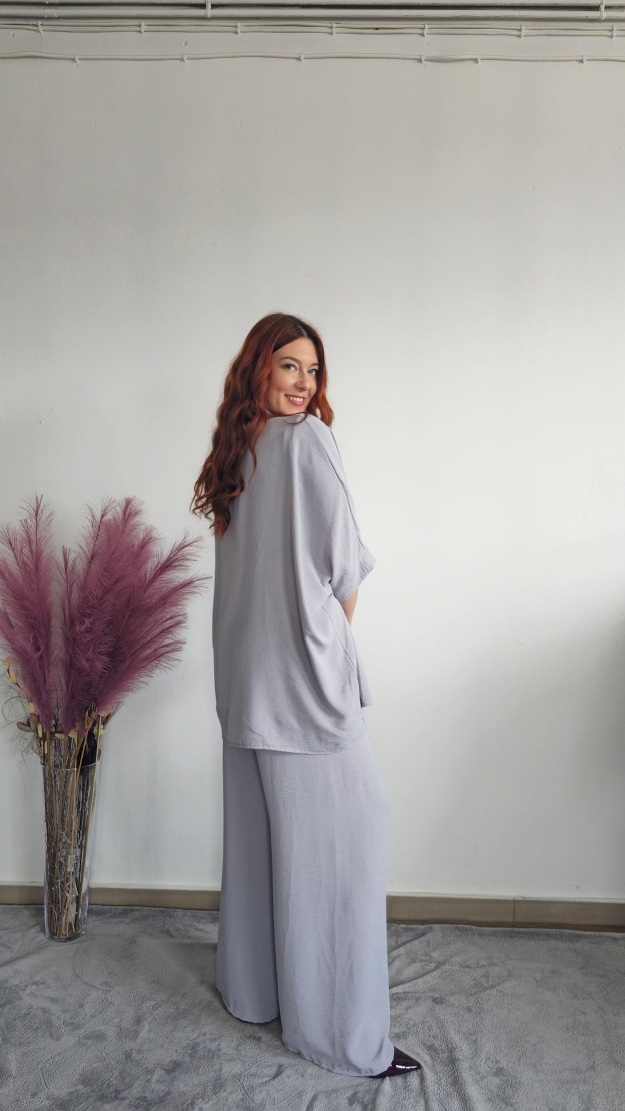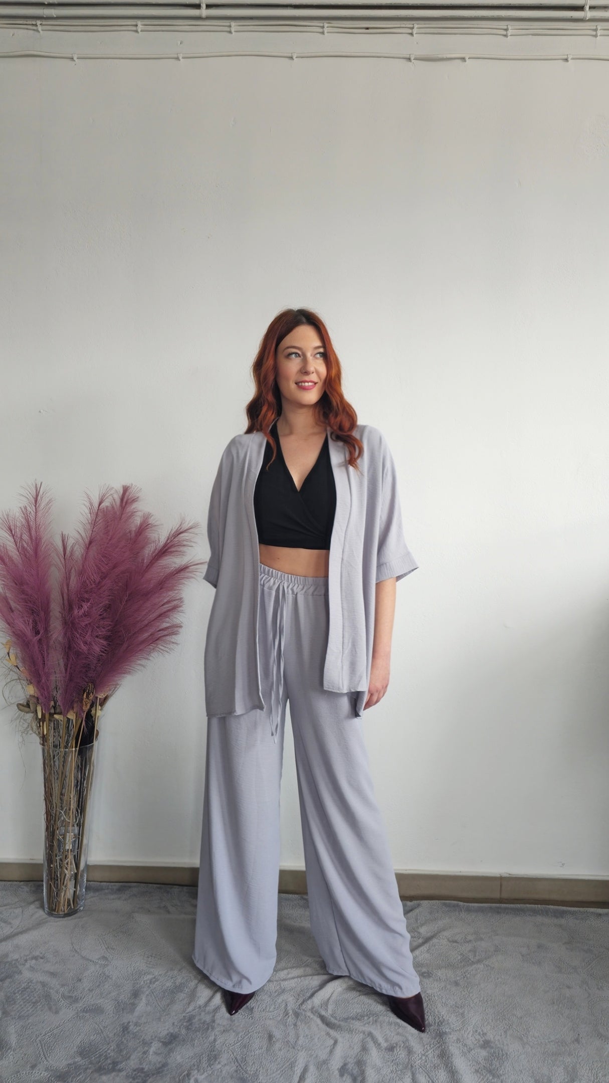 Σετ κιμονό και ψηλόμεσο παντελόνι με λάστιχο και σταθερό κορδόνι που δένει